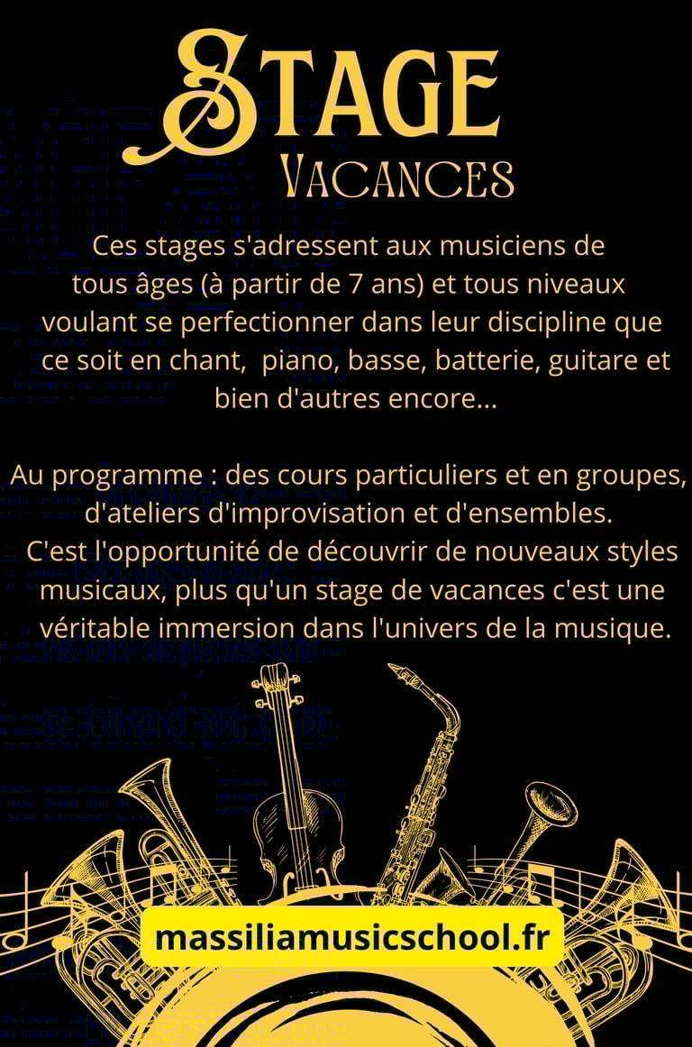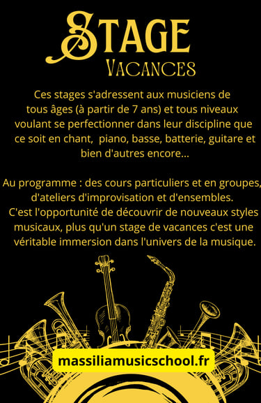 Nous proposons des cours de musique pour tous les âges et niveaux, ainsi que des concerts et événements.